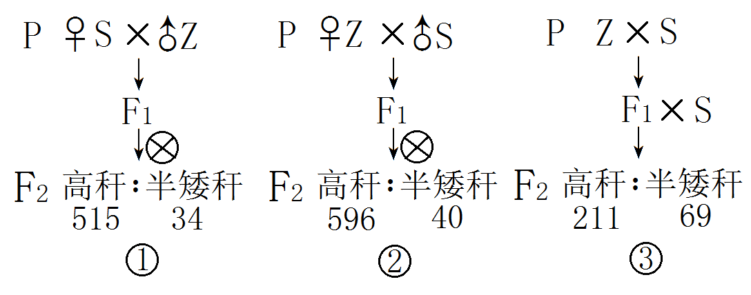 (1)矮秆和对高秆为(隐性)性状,甲×乙得到的F1产生(2)种配子。